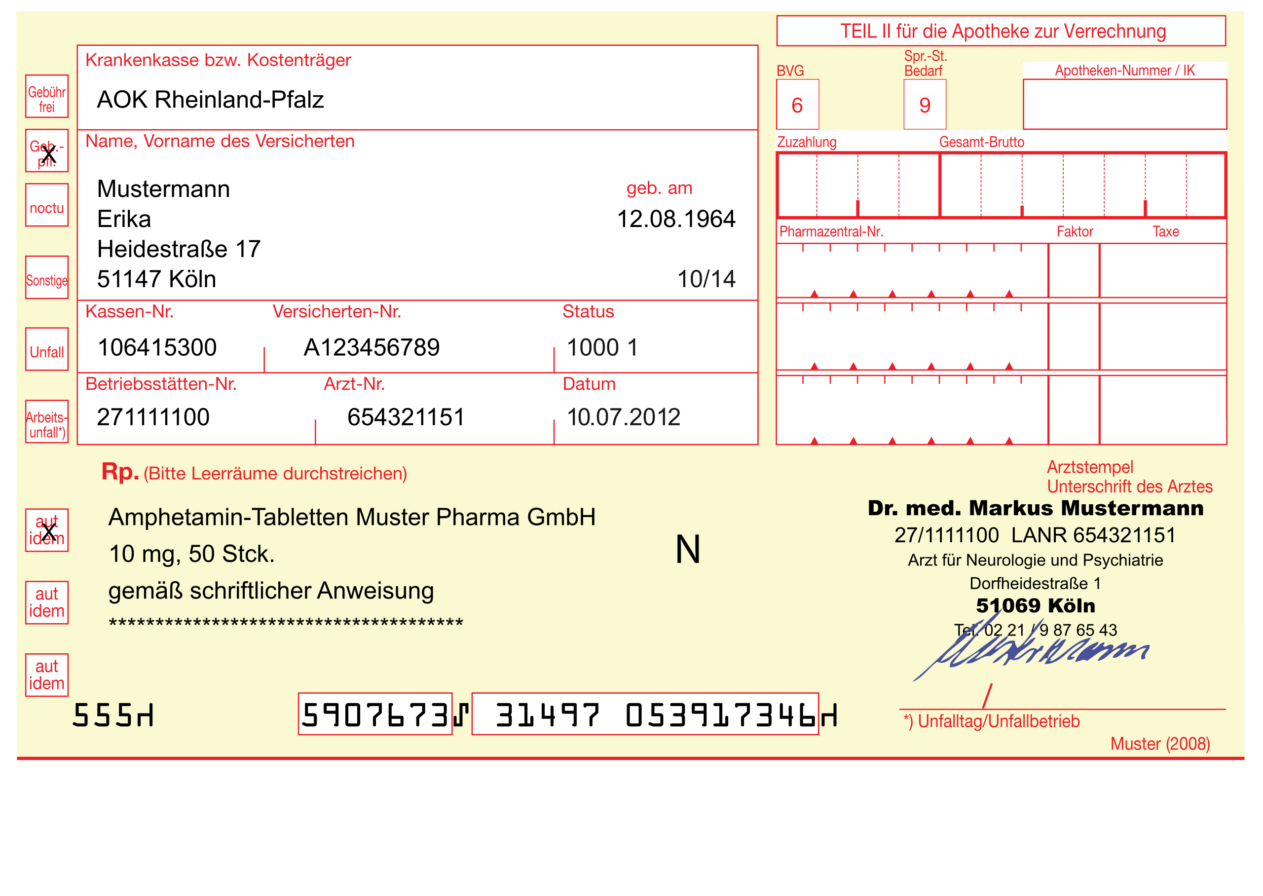 Nach §9 Betäubungsmittel-Verschreibungsverordnung (BtMVV) müssen auf einem Betäubungsmittelrezept (BtM-Rezept) für cannabishaltige Arzneimittel folgende Angaben enthalten sein: